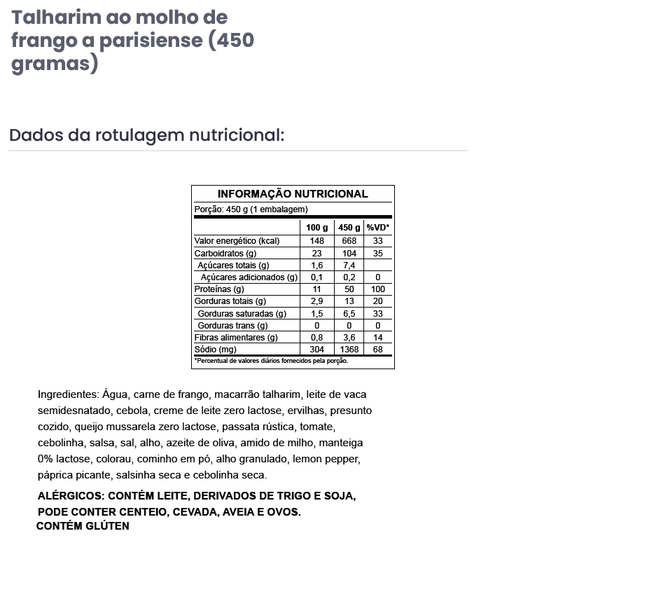 G17 – Talharim ao molho de frango a parisiense e queijo