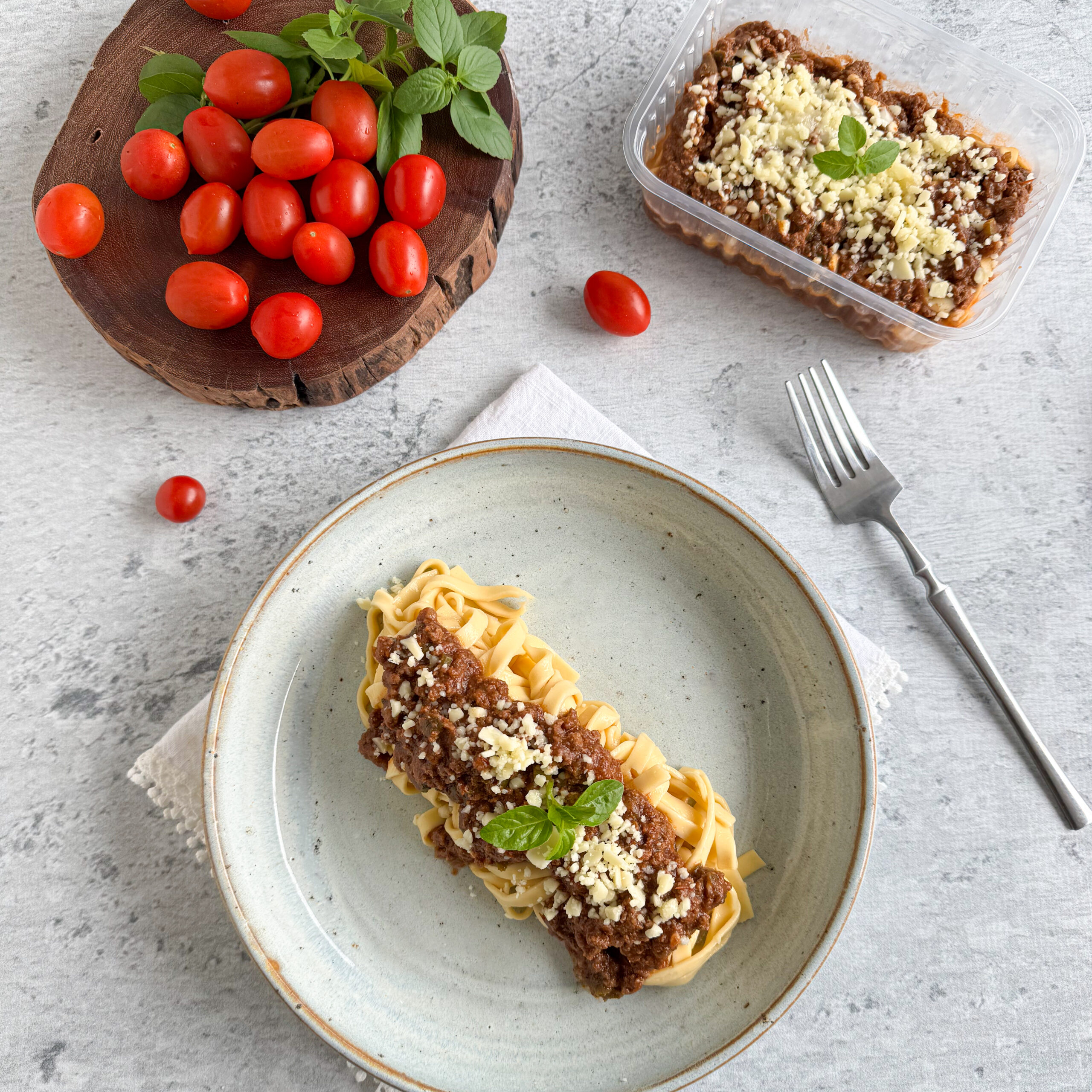 Talharim à bolonhesa com queijo mussarela (GF1)