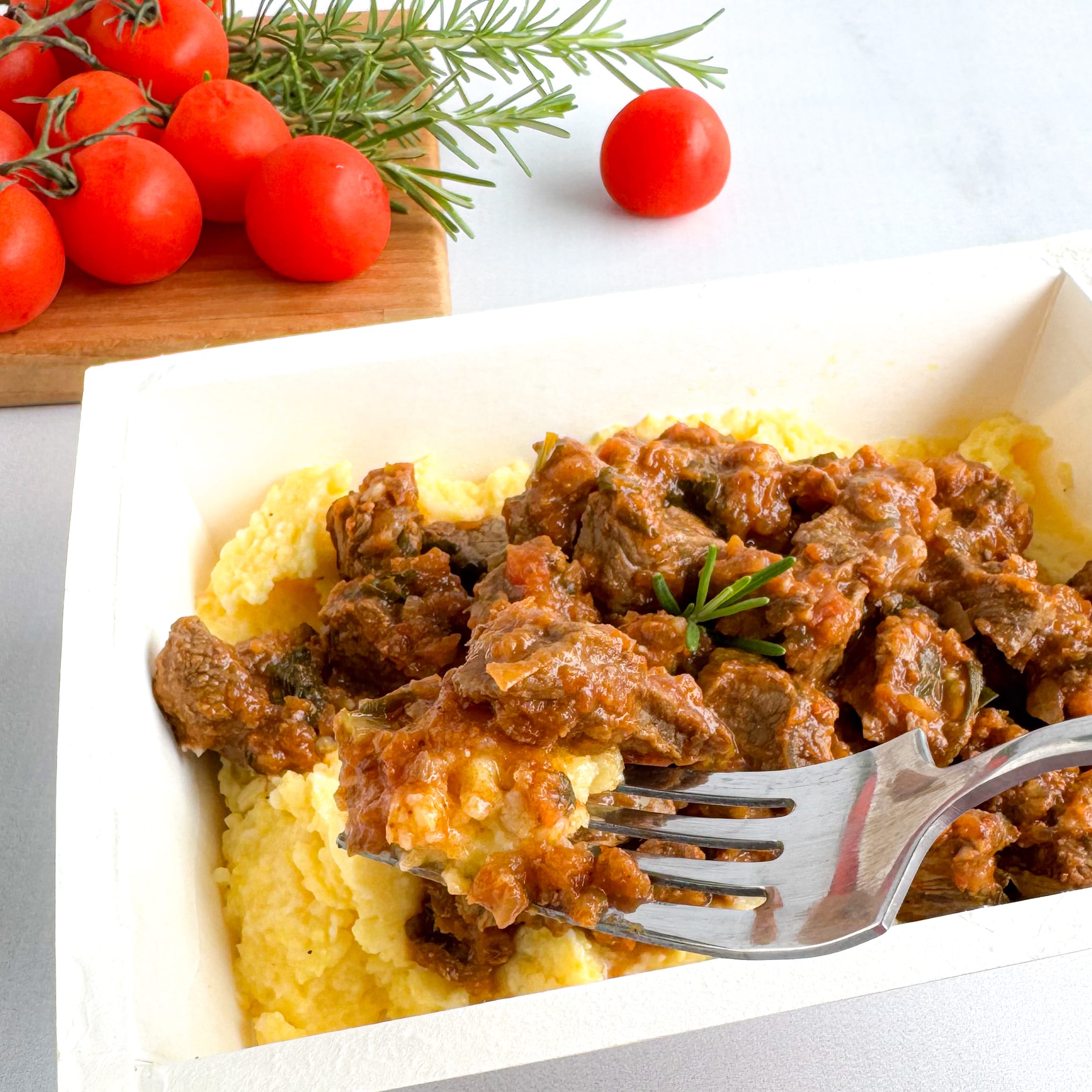 GF31 – Carne de panela ao molho vermelho com polenta cremosa