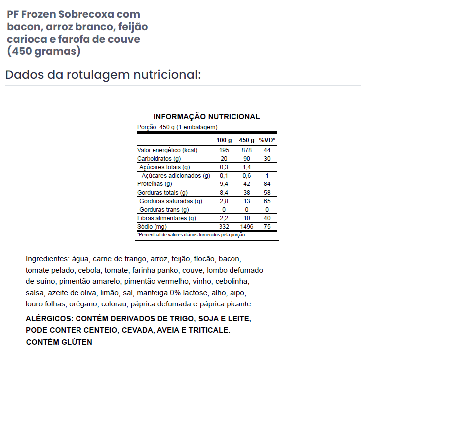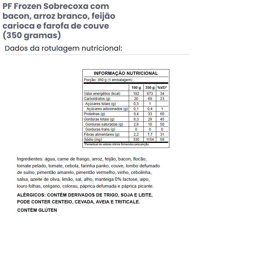 GF27 – PF Frozen Sobrecoxa com Bacon, Arroz branco, Feijão Carioca e Farofa de Couve