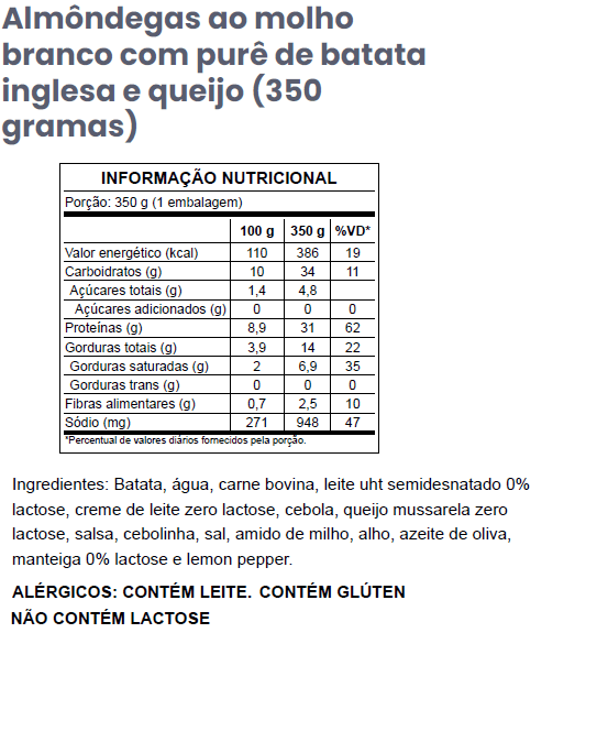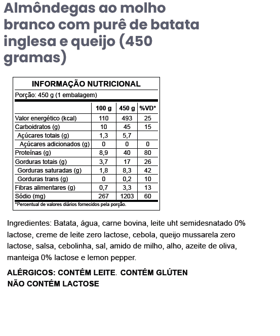 G19 – Almôndegas ao molho branco com purê de batata inglesa e queijo