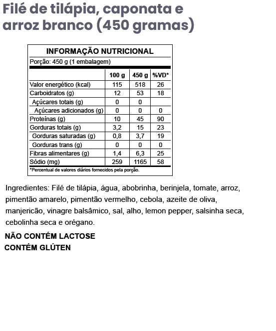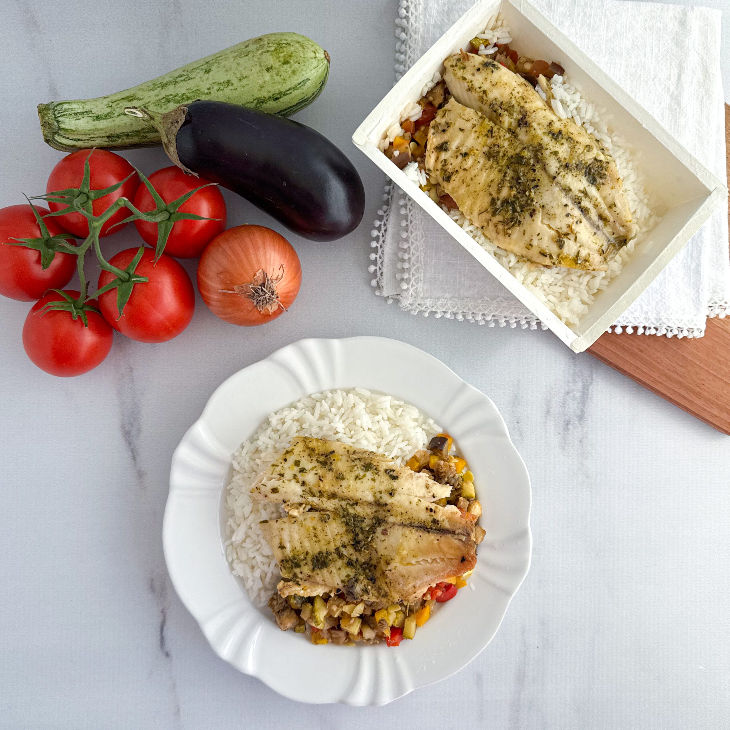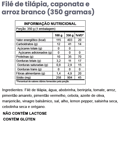 GF33 – Caponata de berinjela e abobrinha com filé de tilápia e arroz branco