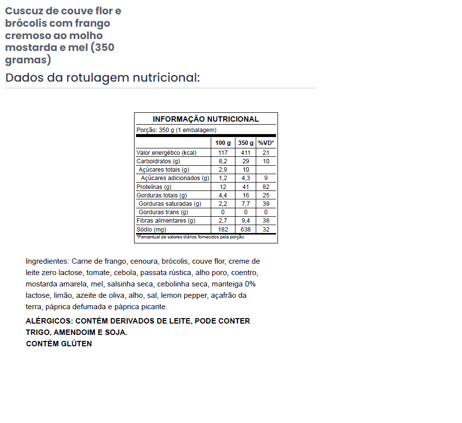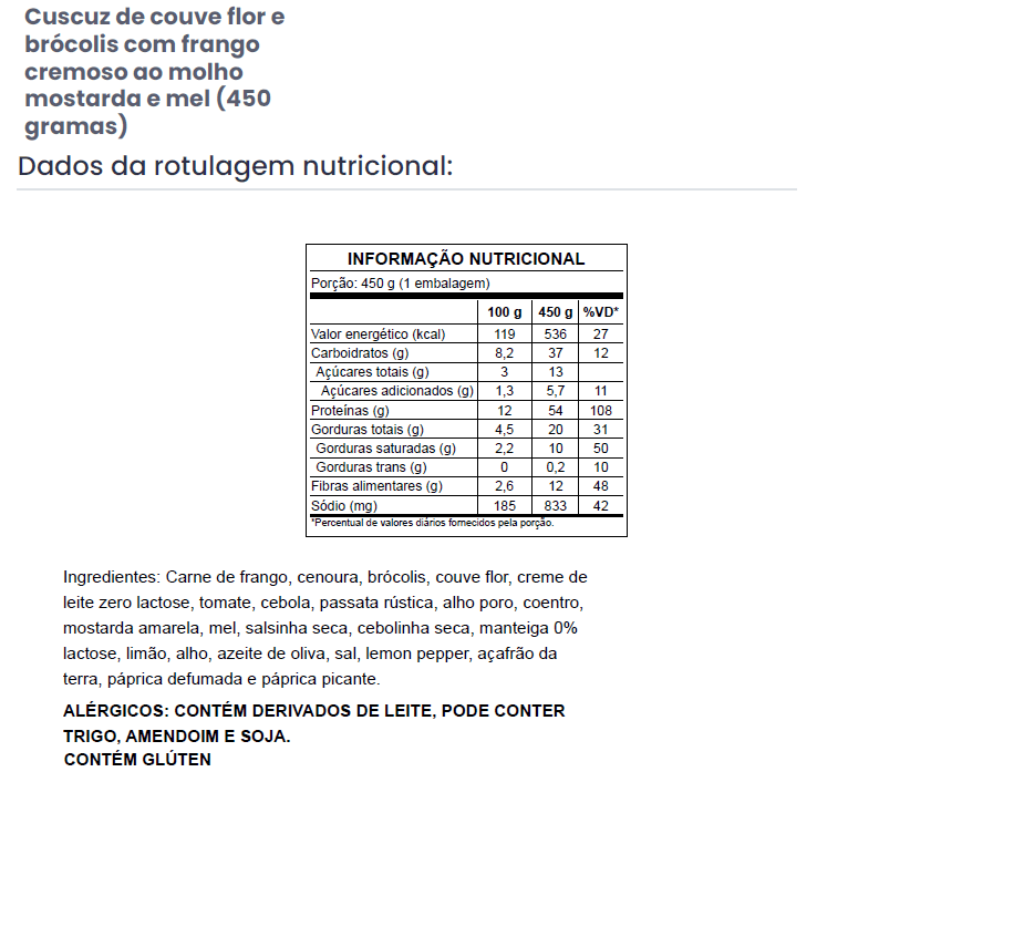 L15 – Cuscuz de couve flor, brócolis e cenoura com frango cremoso ao molho de mostarda e mel