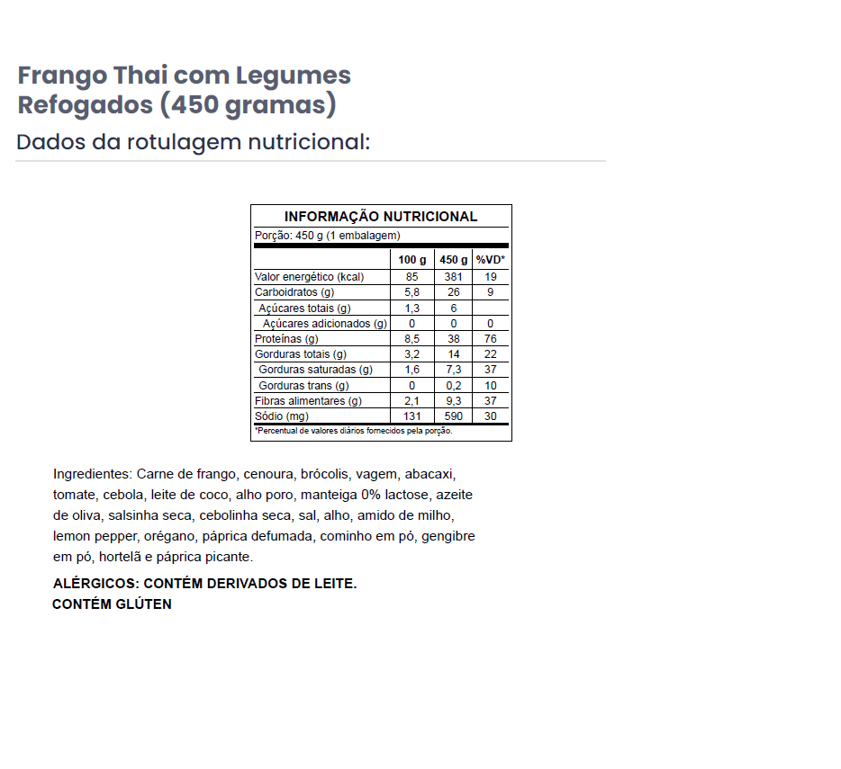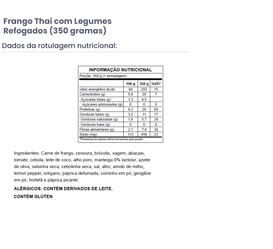 L16 – Frango thai com abacaxi e legumes refogado (Vagem, cenoura e brócolis)