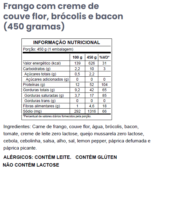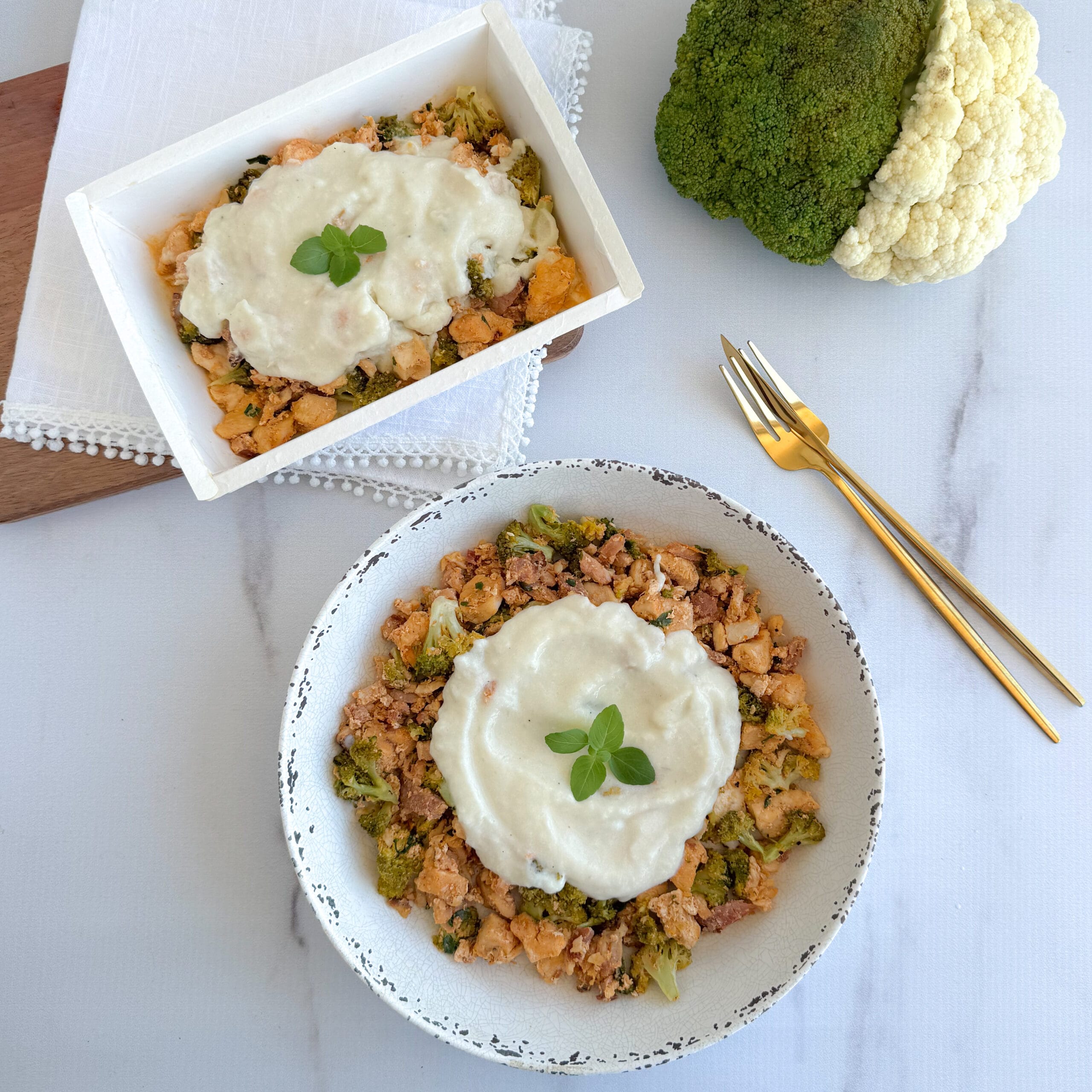 L17 – Frango com creme de couve flor, brócolis e bacon